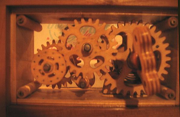 The side plates are plexiglas,so the gears seem to “float”. the Flying Pig